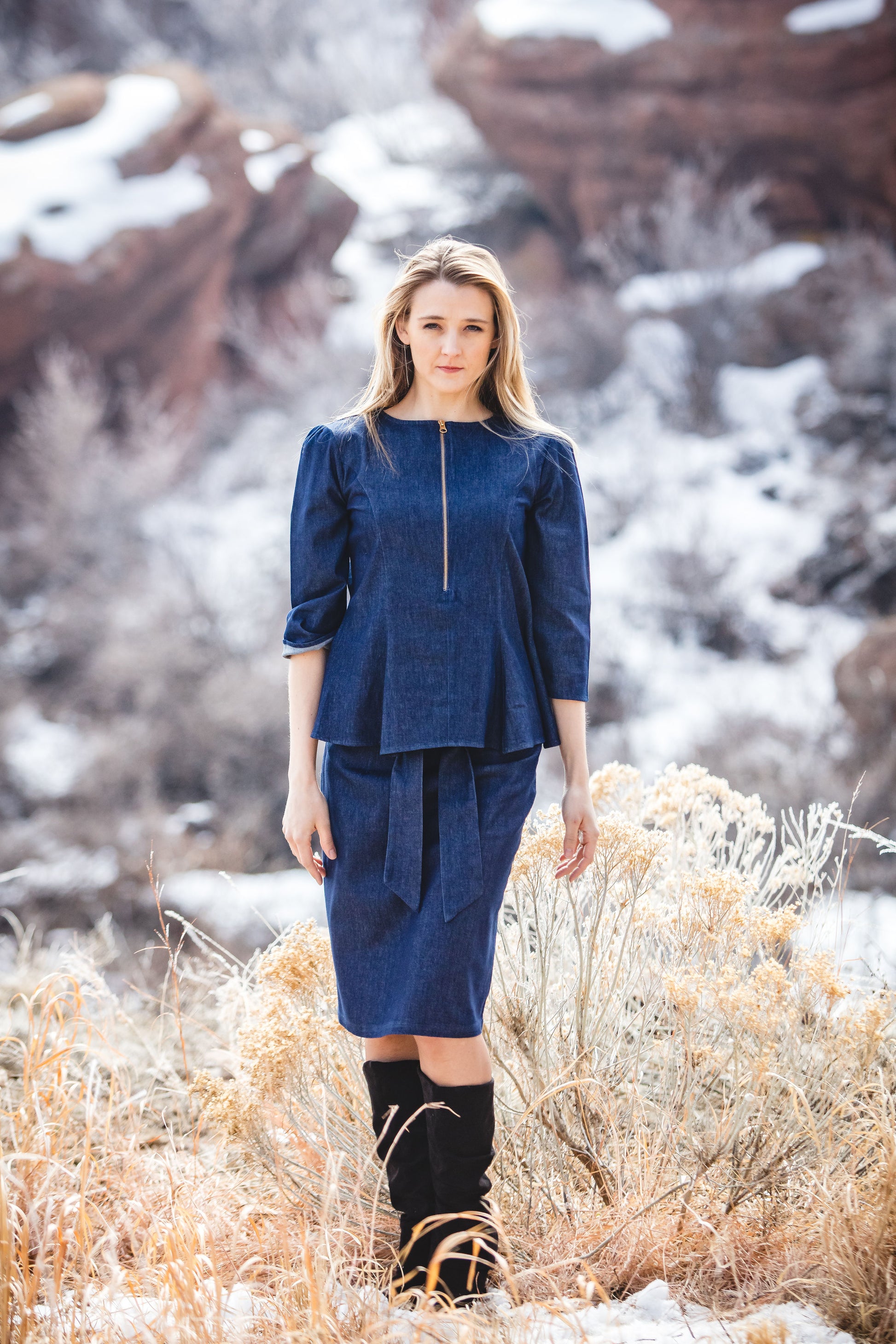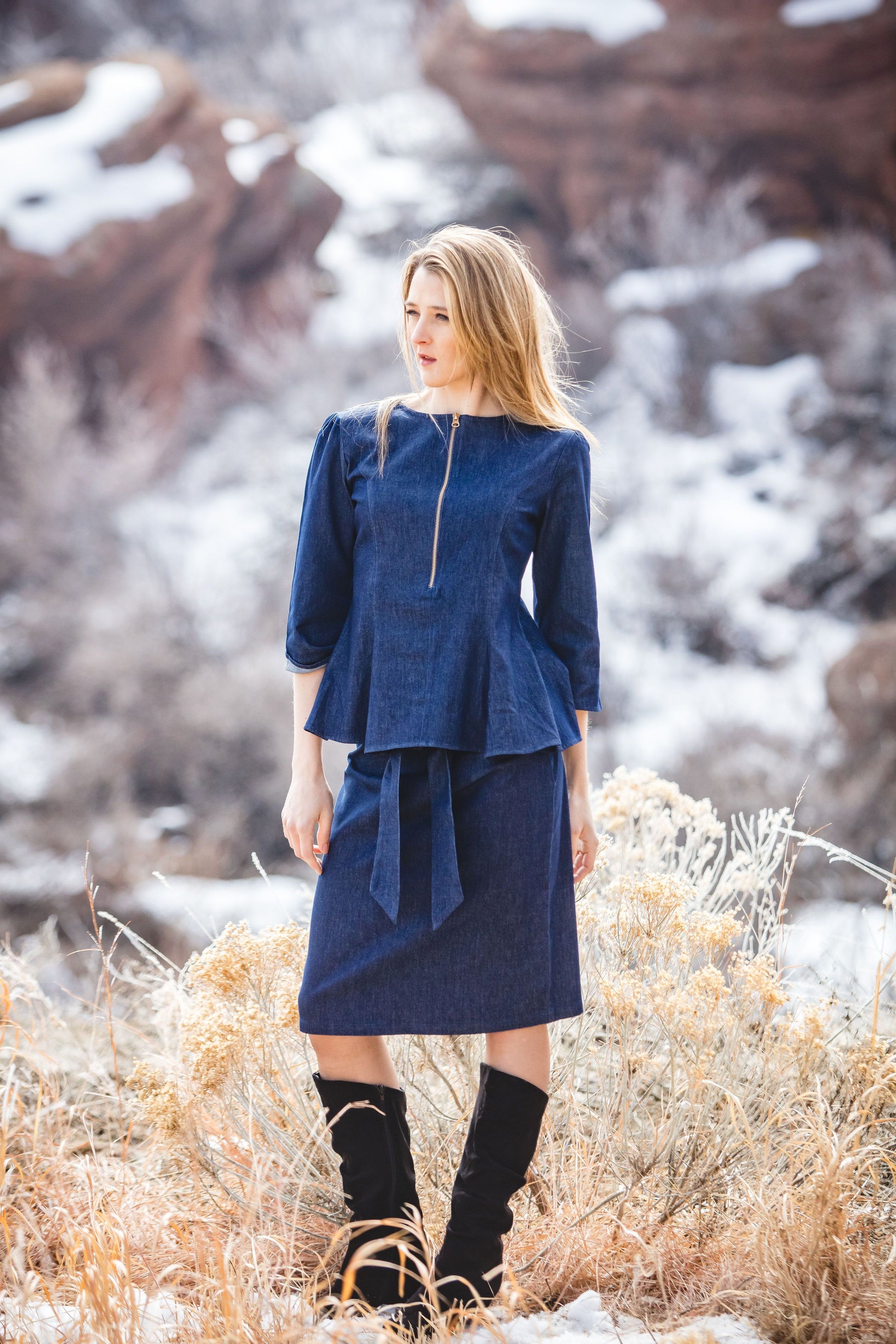 This versatile skirt flatters all shapes and sizes. With a thick tie at the waist that can be tied in front, back, or at the side, and flattering knee length, it hugs every curve and is sexy yet comfortable. This skirt features a back zipper and no pockets for a slim fit. Perfect to wear with a cute peplum top, or tee or blouse tucked in. Pair it with sandals or espadrilles in the summer, and knee-high boots and tights in the colder months. Crafted from a flattering deadstock cotton/spandex blend.